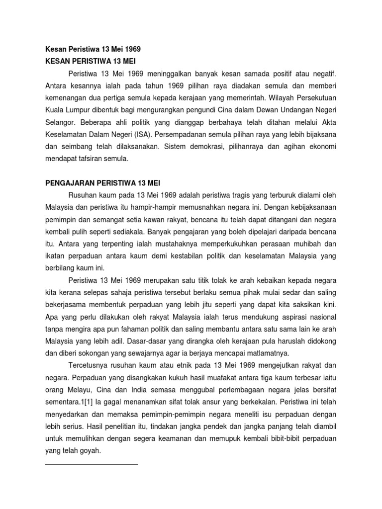 Kesan Peristiwa 13 Mei 1969 Pdf